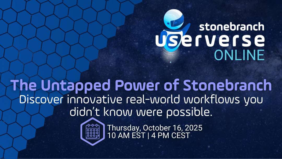 Entdecken Sie überraschende Wege, wie Unternehmen Stonebranch zur Orchestrierung von Workflows nutzen und Innovation vorantreiben. Unerwartete Use Cases und kreative Automations-Stories mit dem Universal Automation Center (UAC) – plus konkrete Ideen, um Ihre eigene Orchestrierungsstrategie zu stärken.