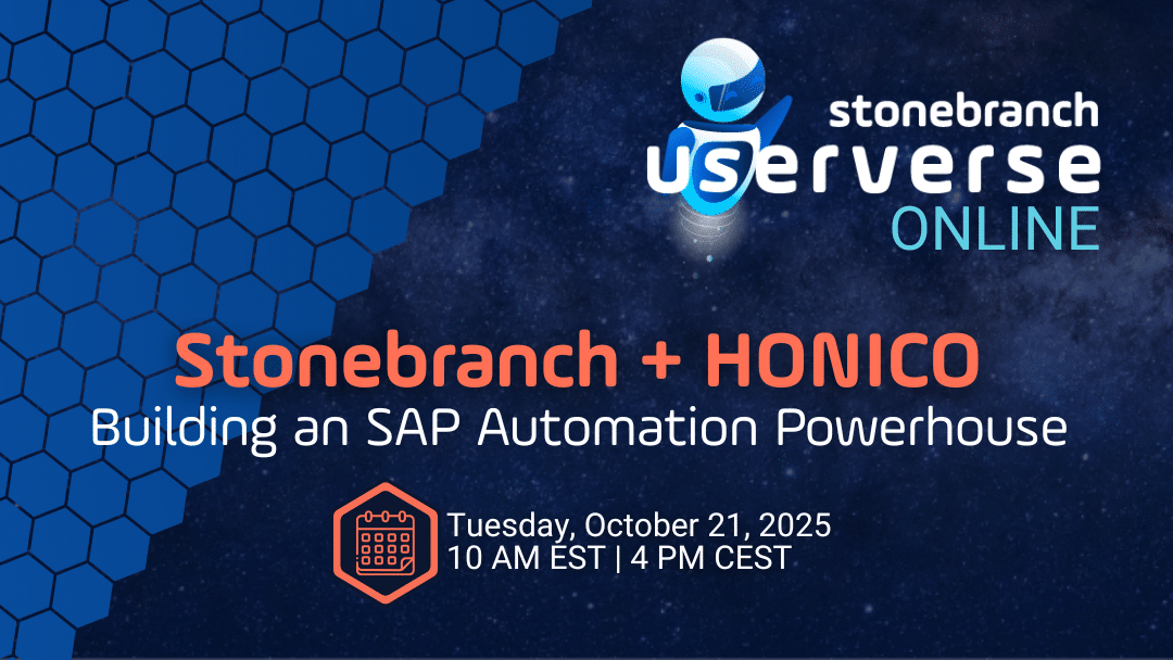 Aufbau eines SAP-Automation-Powerhouse: Erfahren Sie, wie die Akquisition von HONICO durch Stonebranch die Zukunft der Automatisierung prägt – mit gemeinsamem Fahrplan sowie schnelleren Integrationen & Zertifizierungen für SAP-Unternehmen.