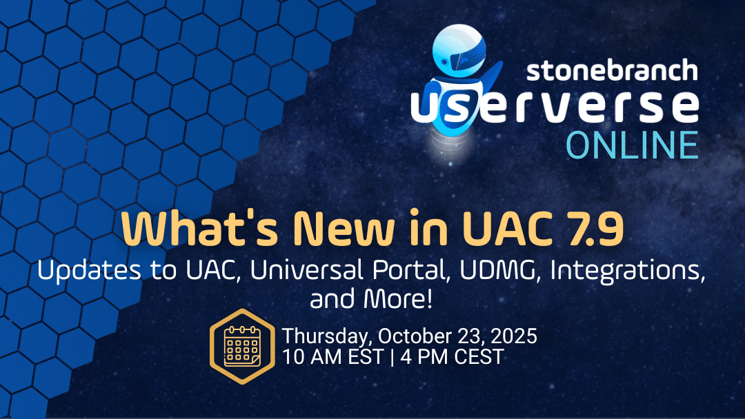 Kick-off für UserVerse Online 2025: Automation & Beyond – Einblicke in die Zukunft der IT-Automatisierung, die neuesten Produktinnovationen von Stonebranch sowie ein erster Blick auf die nächsten Schritte im Universal Automation Center (UAC).
